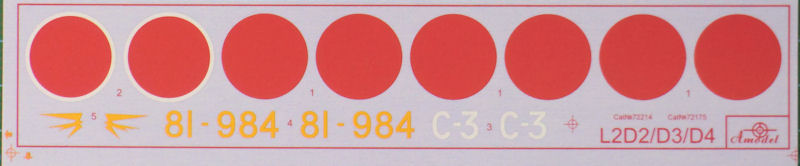 Die Abziehbilder sind ohne Versatz auf lila Decalpapier gedruckt. In der Bauanleitung gibt es Farbangaben für das System von Humbrol.