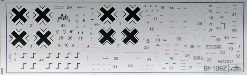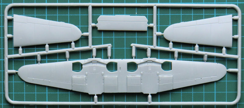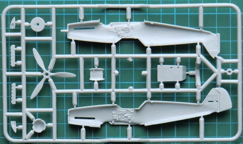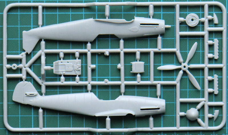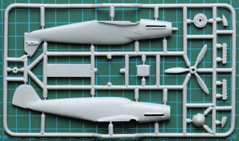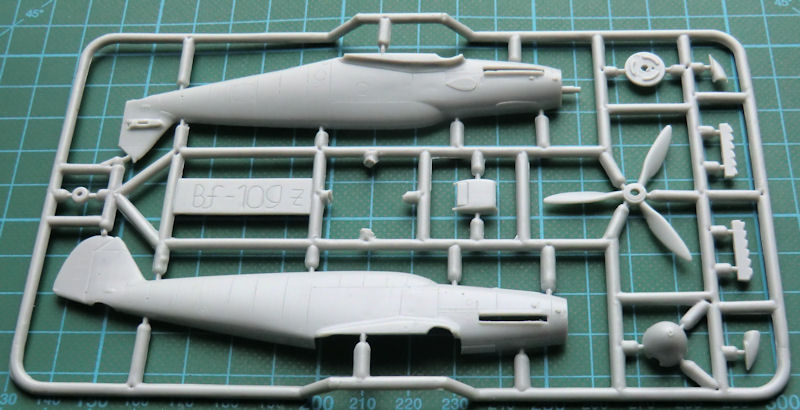 Die spezifischen Teile für eine Nowarra-Bf 109Z wurden ordentlich mitgeliefert. Man hat hier auch im Tragflächenmittelstück das normale Bf 109-Fahrwerk eingebaut. Größere Räder der Bf 109G2 und folgende sind nicht vorgesehen, den Beulen für die Tragflächenoberseiten sind nicht vorhanden. Die Kanzelverglasung besteht nur aus einem Teil.