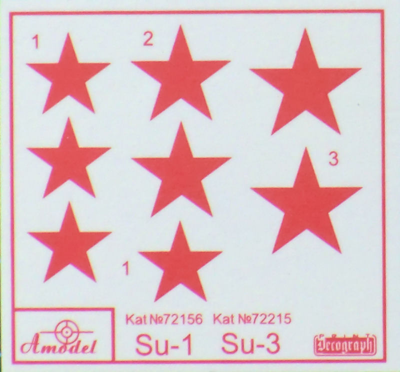 Bausatz: Im typischen Amodel-Stülpkarton befinden sich gut verpackt drei graue Spritzlinge mit 35 Teilen, ein Klarsichtteil, ein kleiner Decalbogen und die Bauanleitung. Die Teile besitzen feine versenkte Strukturen. Grat ist kaum vorhanden. Viele Teile sind mit denen aus dem Su-3-Kit identisch. Hier gibt es die vergrößerten Tragflächen für die Su-1.