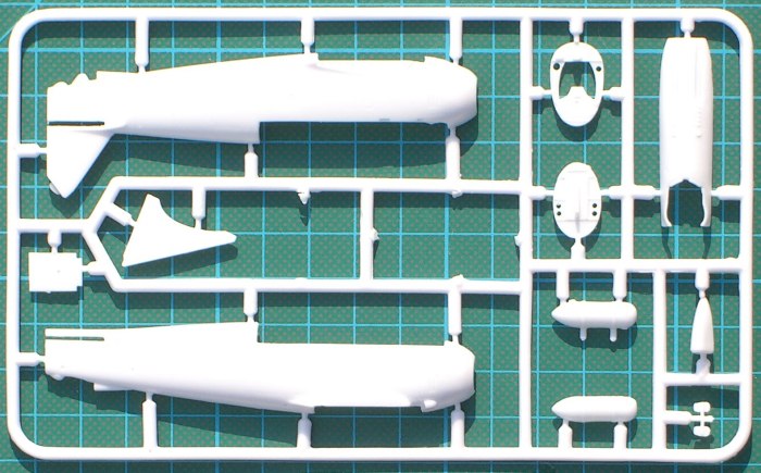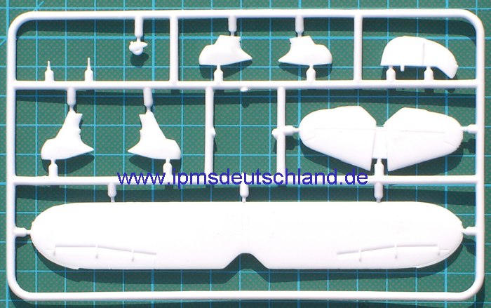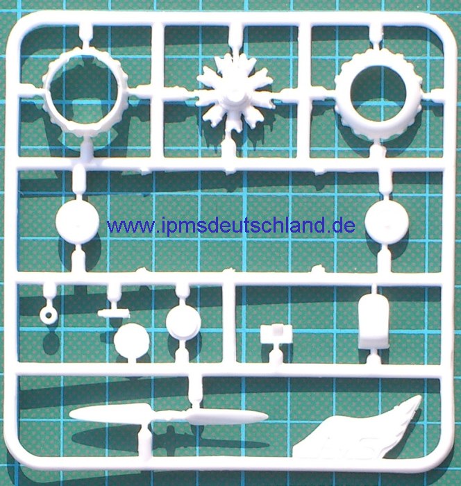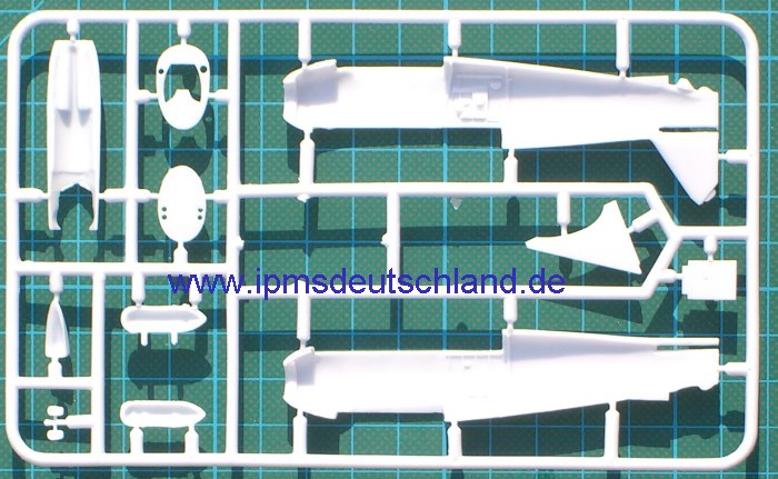Der Bausatz enthält vier weiße Spritzgussrahmen und einen Fotofilm für die Verglasung. Einige Bauteile sind für spätere Maschinen und wandern in die Restekiste. Was beim Betrachten der Spritzlinge auffällt, dass sind offensichtliche Formmängel, denn einige Bauteile haben Grat auf den Teilen! Ansonsten macht der Bausatz einen recht guten Eindruck. Die Detaillierung und die Gravuren gehen in Ordnung. Das Cockpit kann noch paar Sitzgurte gebrauchen und der Motor ist auch noch etwas schwach detailliert. Um den korrekten Winkel der massiven Streben zwischen Ober- und Unterflügel zu gewährleisten, hat AviS eine Spritzgussschablone beigelegt. Sehr gute Idee!!! Die Bemalungshinweise sind in verbalen Farbangaben und die RLM-Farbtöne werden angegeben. Alle Farbangaben haben allerdings das gleiche Vierfarbschema. Hier gab es doch Unterschiede und ich rate doch mal Vorbildfotos zu studieren. Der Decalbogen enthält außer zwei VDM-Markierungen für die Propellerblätter keine Wartungshinweise. Das deutsche Hoheitszeichen liegt als „Fensterkreuz“ bei.
