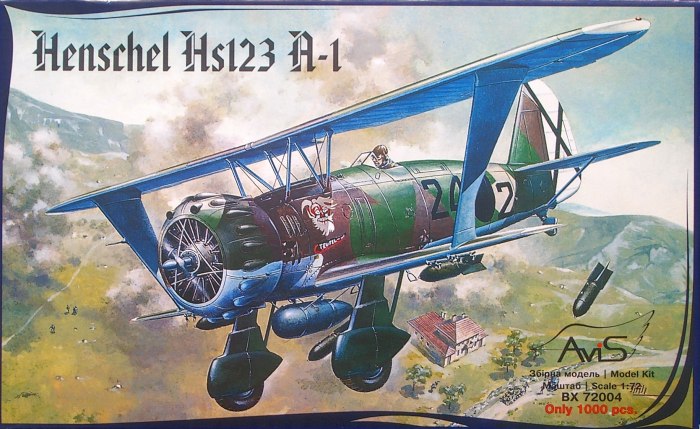 Bausatz: AviS ist ein neuer Name aus der Ukraine am Modellbaumarkt. Die Hs 123 sollte ja mal bei ICM erscheinen. Im 2007er Katalog ist dieser Flugzeugtyp nicht mehr enthalten und somit dürfte sich da jemand mit der Form selbständig gemacht haben. Dieser Bausatz ist auf 1000 Exemplare limitiert und für seine Größe und Ausstattung nicht unbedingt preiswert. Von Pavla war ja auch mal eine Hs 123 angekündigt worden. Leider ist es darum auch recht still geworden.