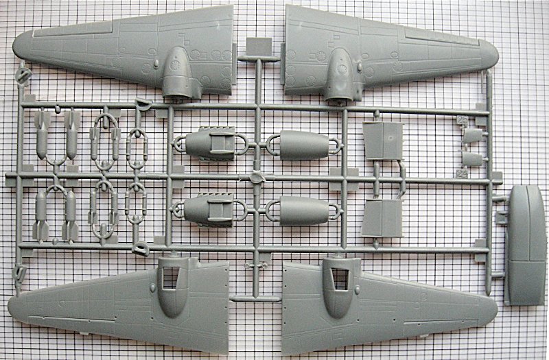 Dies wird besonders deutlich wenn man den vorliegenden „Besatz“ an Oberflächendetails der Bilek- Me betrachtet. Sind die Vertiefungen auch nicht vollkommen scharfkantig in dem (auch hier verwendeten) grauen Kunststoff eingelassen, also leicht „verwaschen“, so gibt es immerhin mehrere Nietendarstellungen entlang von Klappen und Tankdeckeln auf der Tragflächenober- wie -unterseite. Rumpf und Leitwerk sind in etwa mit dem italienischen Modell vergleichbar. Bedauerlicherweise sind aber einige Trennfugen bzw. Gravuren sowie leider auch ganze Objekte nicht vollkommen richtig platziert. Es bleibt also ein bei Beiden merklicher Abstand zum für diesen Typ in 1/72 Maßstab-setzenden Fine-Molds-Kit, den es auch von Eduard gibt, bestehen.