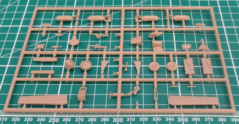 In der typischen kleinen etwas unpraktischen Schüttbox befinden sich gut verpackt drei beige Spritzlinge mit 67 Einzelteilen, ein Klarsichtrahmen mit fünf Teilen, ein Resinteil, die Bauanleitung und ein Decalbogen. Die Teile sind der heutige Standard von Brengun. So gibt es schöne Kleinteile und feine versenkte Strukturen. Die Unterschiede zur A-36 wurden gut in der Tragfläche umgesetzt. Ein paar Teile sind für andere Vorbilder bestimmt und so gibt es noch etwas für die Restekiste. So findet man einen verkorksten Lufteinlauf und daher versteht man den Sinn des Resinteils.