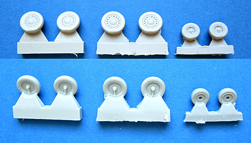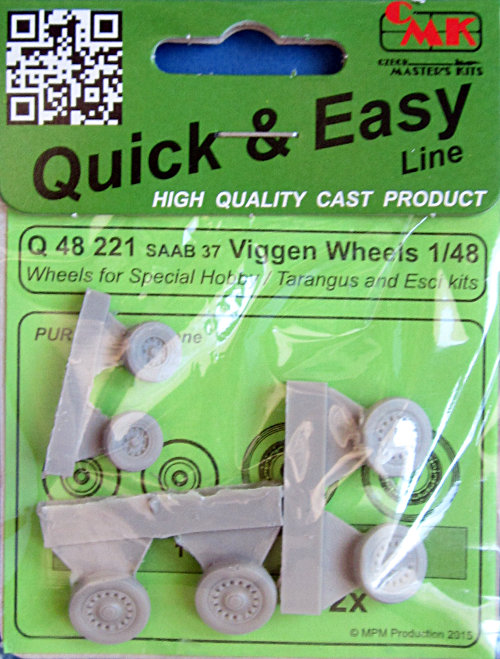 CMK hat in seiner Reihe von Zurüstteilen Resin-Räder für die hauseigene SAAB 37 Viggen (AJ37 Viggen, JA37 Viggen) herausgebracht. In der Kunststofftüte auf dem Pappblister finden sich vier Hauptfahrwerksräder und und das doppelt bereifte Bugrad aus Resin. Die Räder sind mit einem Rillen-Profil versehen und abgeflacht. Wie bei den neuen auf "rapid prototyping"-Mastern basierenden Sätzen üblich, findet sich der Anguss auf der Flanke der Räder, wo sich dieser recht gut entfernen lässt.