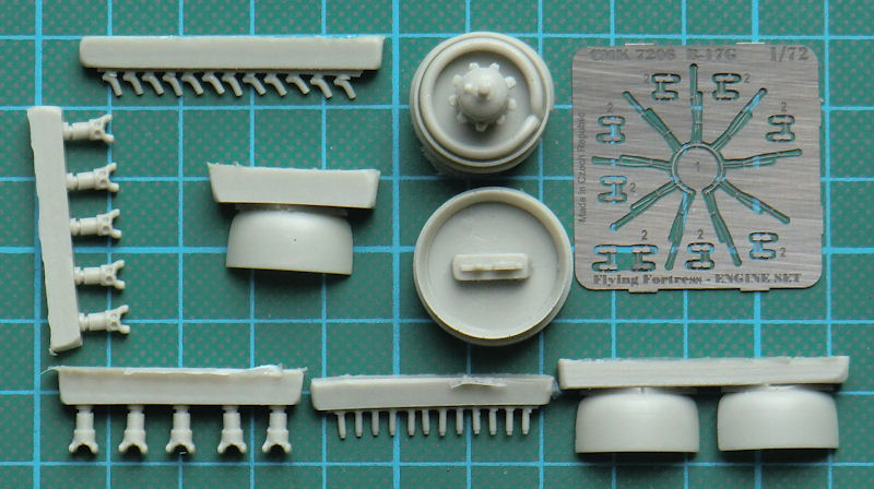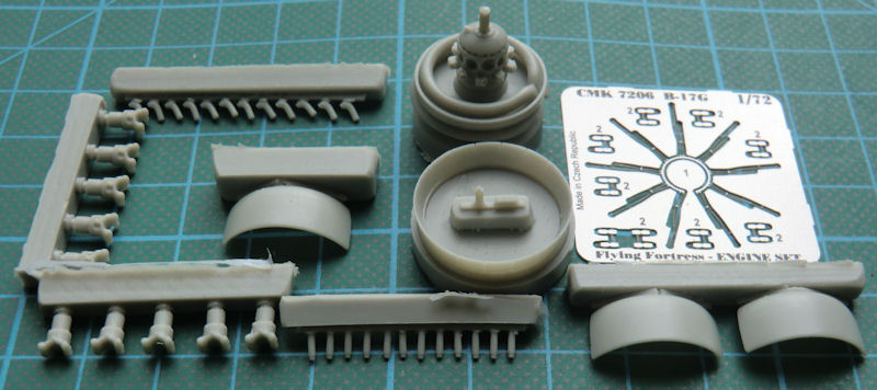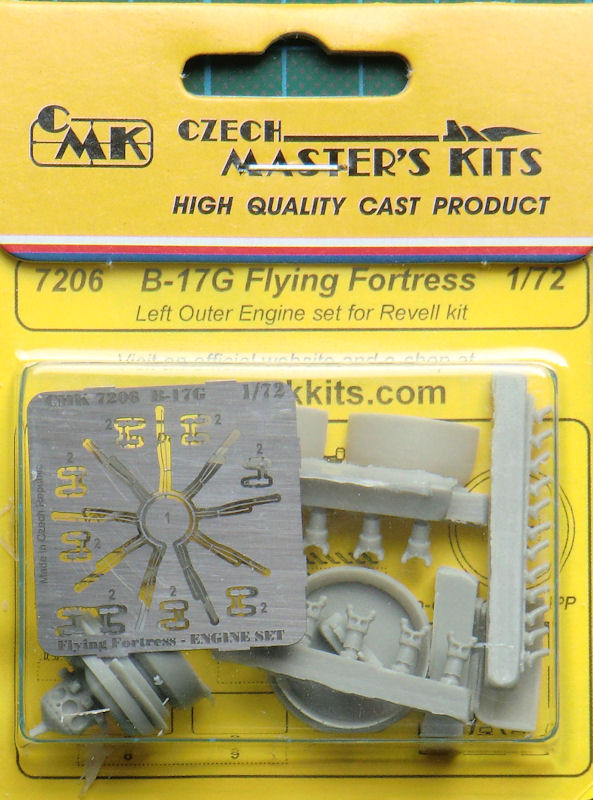 Für den Revell-Bausatz der Boeing B-17G hat CMK ein Motordetailset herausgebracht. Es beinhaltet alle Teile zur offenen Darstellung des linken äußeren Motors.