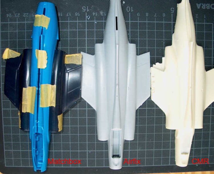 Unlike Airfix and CMR the Matchbox kits hull is split vertically instead horizontally. Unless you are up to the challenge or need the intakes avoid this kit, if you want to get finished in time. The Airfix kit however isn't much better, as it has raised details and has to be rescribed extensively. Adding to that, the kit is known for its bad fit and lousy details, although better detailed then the Matchbox "toy". One dear colleage of mine Jan Forsgren, a highly skilled swedish modeller from the IPMS Stockholm, told me he had to spent so much time with the Airfix kit because it was awful and needed a lot of correcting. After reading through his Buccaneer reviews and watching the pictures it looked reminiscent to the time when Aircraft modelling was more like shaping a piece of Balsa-wood, (which was well before MY time). However he claimed it was the only way he could deal with the kit. Both plastic kits are only recommended if you are not faint of the heart and have a lot of time, if your intention are to bring the up to the current standard of modelling.