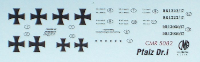 Bausatz: CMR hatte die Pfalz Dr. I schon vor einigen Jahren im Programm. Dieser Bausatz wurde überarbeitet und mit Decals (erkennbar an der fünf bei der Kat.-Nr.)versehen. Die Bauanleitung ist mal wieder eine Wucht. Sie ist nicht nur sehr übersichtlich, sondern sie enthält auch noch ordentliche Maßstabszeichnungen. Daraus ist auch die Verspannung des Dreideckers zu erkennen.