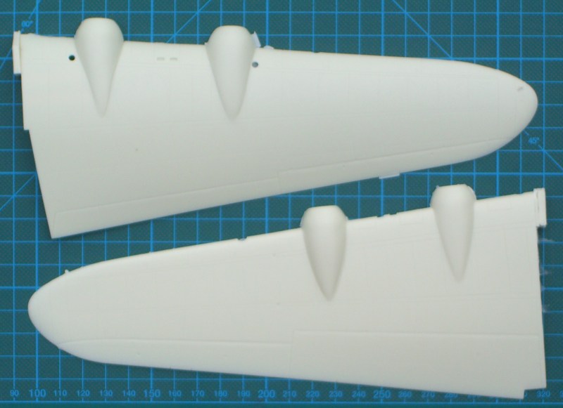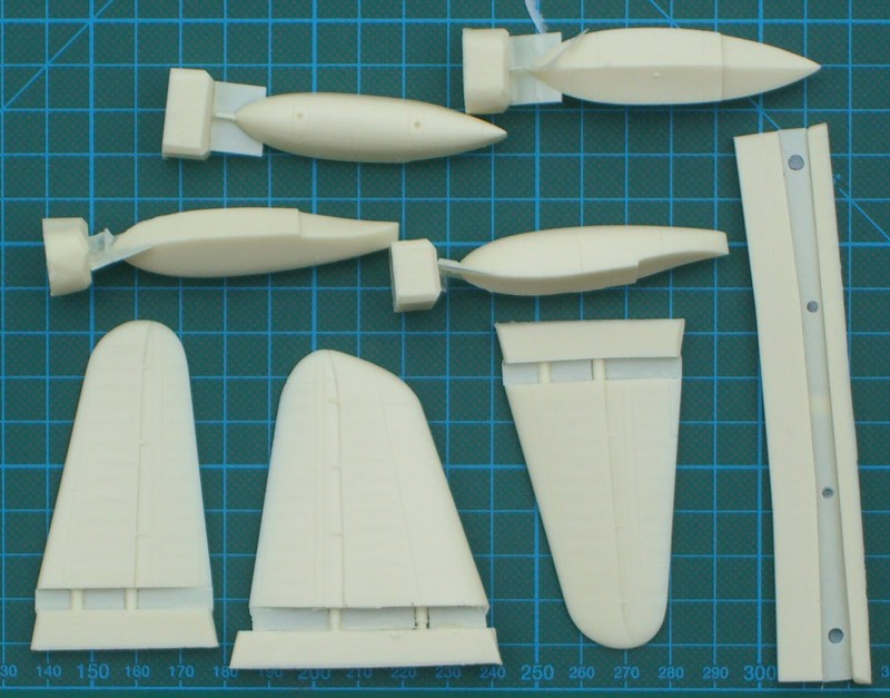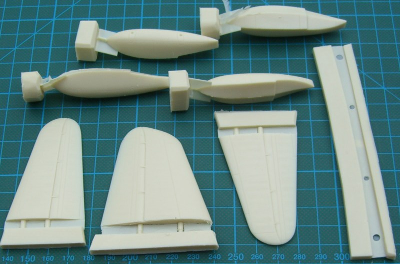 Allein der Karton hat eine neue Dimension und er ist gut gefüllt mit Bauteilen aus Resin, Vacumaterial (Kanzeln) und Fotoätzteilen sowie Decals. Natürlich ist die Bauanleitung wieder ein Hammer. Sie enthält dieses Mal aber kein Bildmaterial von Vorbildern. Überrascht hat uns beim Betrachten der Rumpf. Bei dem hervorragenden Ergebnis haben Urmodellbauer und Gießer die Meßlatte ein ganzes Stück nach oben gesetzt. Die Tragfläche besteht aus vier Teilen und wird mittels Holm am Rumpf befestigt.