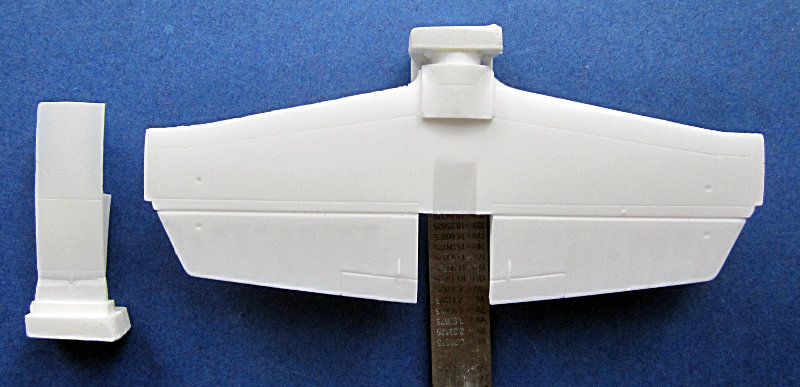 Die Beiden Teile sind in einem weißen Resin sehr sauber abgegossen. Der Anguss des Höhenleitwerks ist so gestaltet, dass er die feinen Kanten der Rumpfüberlappung schützt. Trotz der wenigen Teile ist die Anwendung nicht einfach, denn das Heck der Do 17 muss herausgesägt und passend zurechtgefeilt werden. Die Bauanleitung zeigt recht gut wo dies zu erfolgen hat.