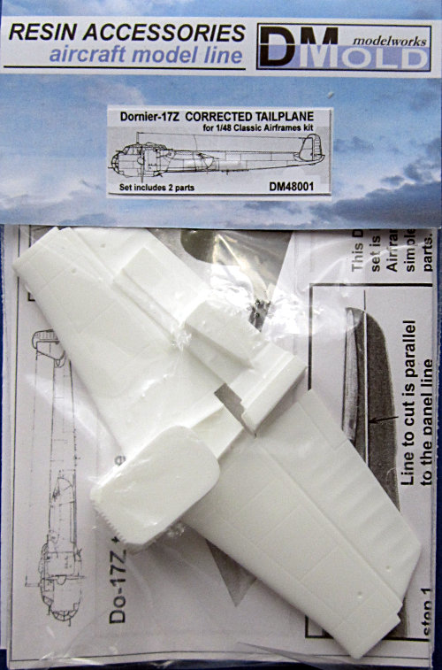 Für die Dornier Do 17 Z von Classic Airframes bietet DMold diesen Korrektursatz an. Bei der Do 17 erfolgt die Trimmung mittels des gesamten Leitwerks. Dies ist im Bausatz nicht sehr gut dargestellt. Da der Bausatz schon länger nicht mehr erhältlich ist, habe ich eigentlich nicht damit gerechnet, dass dieser Satz jemals wieder aufgelegt wird. Aber wie das Leben so spielt, hat sich Dmitri Malkow der wartenden Modellbauergemeinde erbarmt und vor kurzem die Wiederauflage heraus gebracht.