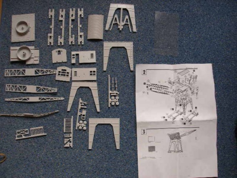 Die Montage des Bausatzes ist einfach, mit 58 Teilen ist der Bausatz auch sehr überschaubar. Hierbei entfallen allein 19 Teile auf die Geländer. Der Kran lässt sich im Modell nicht funktionsfähig ausführen. Eine Anleitung zur Seilführung fehlt.