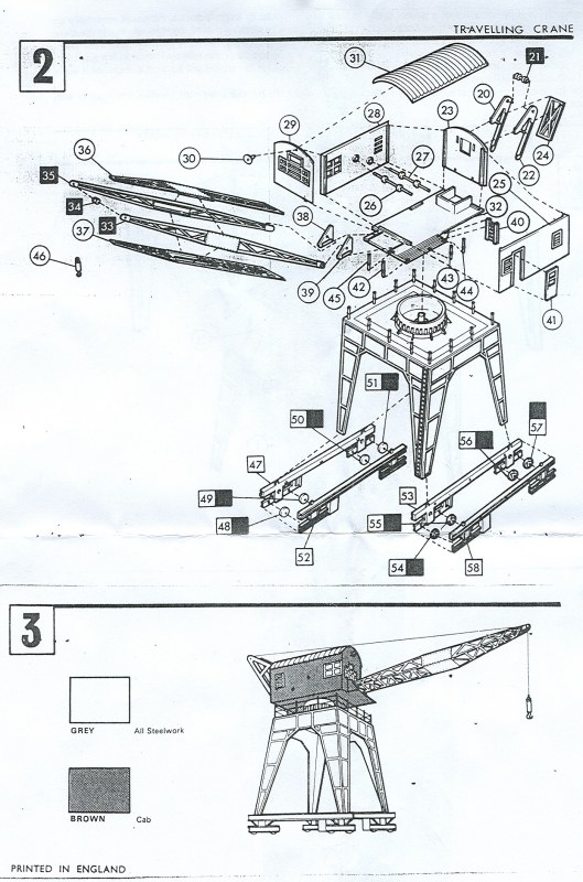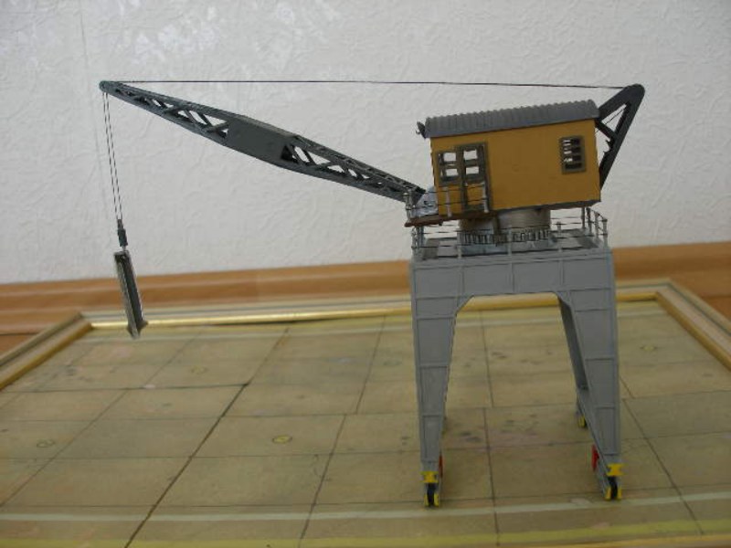 Der Kran ist nur aufgesetzt, eine Arretierung ist im Bausatz nicht vorgesehen. Die vorgegebenen Farbangaben sind dürftig, Grau für alles Eisen, braun für die Kabine. Hier hat der Modellbauer Möglichkeiten zur individuellen Entfaltung.