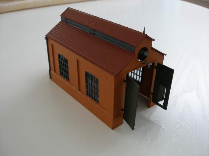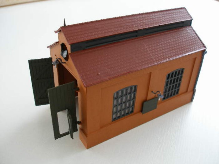 Im Bausatz gibt es verschiedene Alternativmöglichkeiten, wie einen kleinen Verschlag an der Rückseite des Gebäudes. Außerdem enthält der Bausatz Ergänzungsteile, wenn man entweder zwei Lokschuppen hintereinander oder nebeneinander anordnen möchte. Auch für die großen Fenster ist Klarsichtfolie vorhanden.