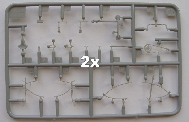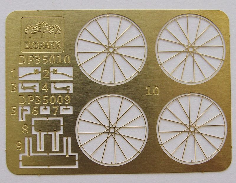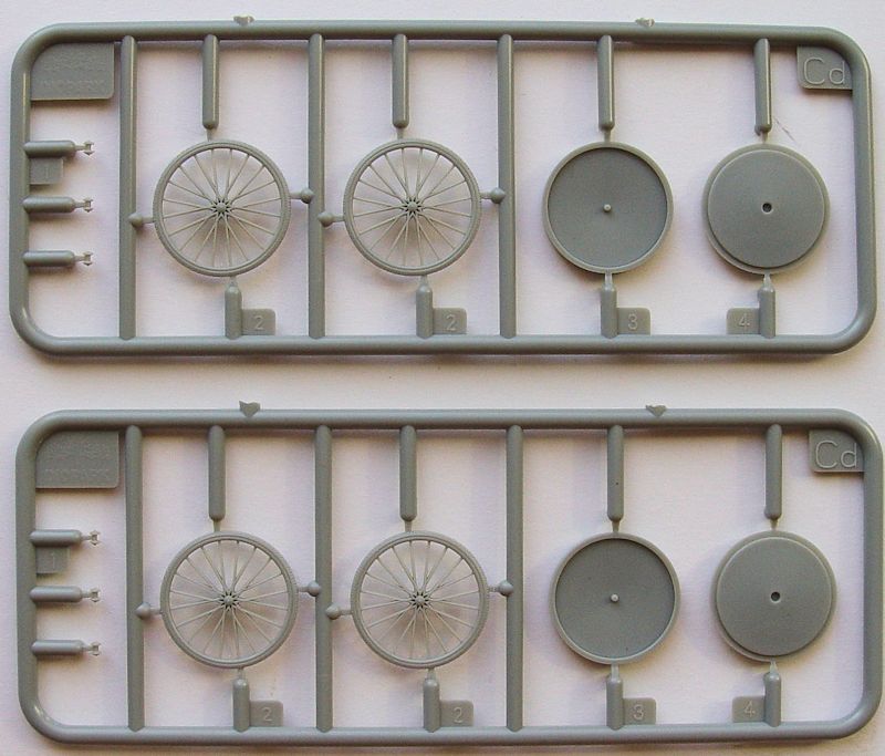Wahlweise kann man die Speichen aus Ätzteilen darstellen oder ein Spritzgussteil nehmen. Es ist sogar eine Biegeform für die Speichenätzteile vorhanden. Man hätte nur noch den Reifen einzelnen beilegen sollen. So muss man das Spritzgussteil "beschneiden" und von den Plastikspeichen befreien.