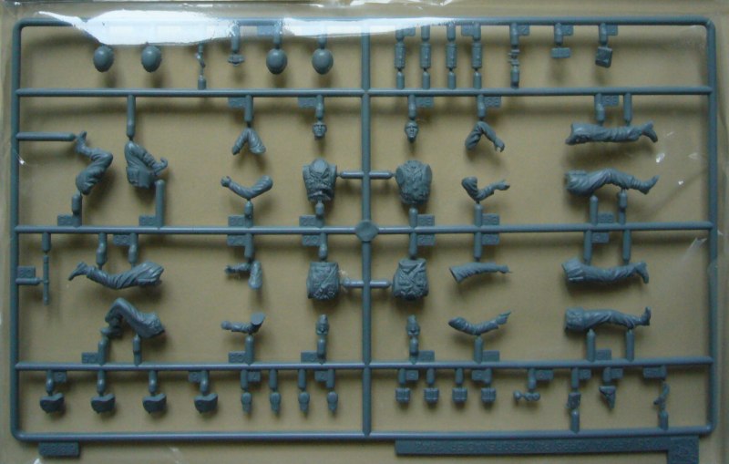 Alle Figuren weisen die Afrika typischen Uniformen auf, wobei ich bei den liegenden Figuren die Halstücher und Helmüberzüge besonders überzeugend dargestellt finde. Im Karton findet man einen großen Spritzling, auf dem alle Figurenteile untergebracht wurden, sowie zwei kleinere für unterschiedliche Waffen. Der Bausatz ist zwar nicht so hoch detailliert, wie die Gen2 Ausführungen, gehört aber meiner Meinung nach zur absoluten Spitzenklasse.