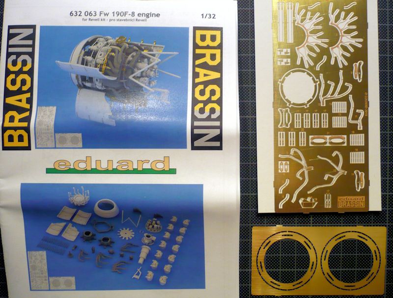 Dieser enthält den kompletten BMW 801 Motor mit Aufhängungen und den Gehäuseklappen. Zusätzlich zu den Resinteilen gibt es diverses Fotoätzmaterial zur Detaillierung.