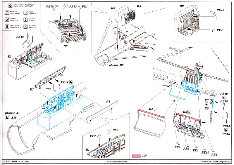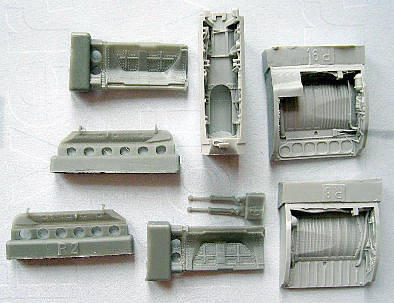 Nach Aires (FirstLook) bietet jetzt Eduard einen Satz in der Brassinserie die Fahrwerksschächte seiner MiG-21 Bausätze ersetzt. Eduard hat hier wirklich gute Arbeit geleistet und verbessert sein gutes Ausgangsprodukt filigran ausgeführte Leitungen und Anbauteile. Diese Lösung ist auf alle Fälle der im Exteriorsatz (FirstLook) angebotenen überlegen. Ergänzt wird das Ganze durch die entsprechenden Fahrwerksabdeckungen.