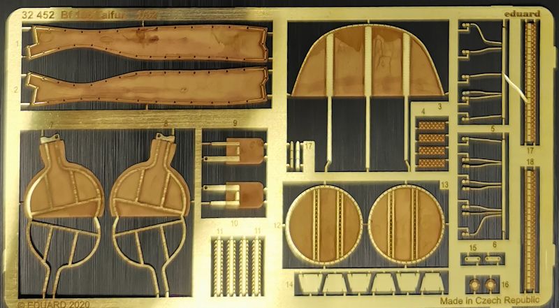 Die Platine liefert Ersatz für die Fahrwerkklappen sowie weitere Details für die Fahrwerkschächte und den Motor. Das Set wertet die Bf108 gut auf.