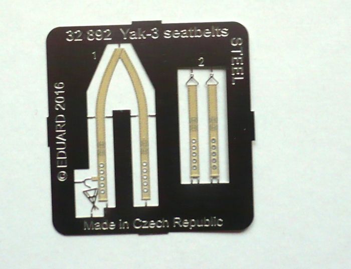 Für die Jak-3 gibt es auch die passenden Sitzgurte. Das Gurtmaterial ist ockerfarben vorlackiert. Bei der Größe des Modells sollte man hier nicht sparen. Gerade der Arbeitsbereich des Piloten wird im Maßstab 1:32 zu einem zusätzlichen Hingucker.
