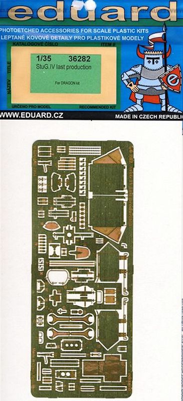 Für das neue Dragon StuG IV last production-Modell (1:35) bringt EDUARD als aktuelle Neuheit ein Update-Set heraus. Wie gewohnt beinhaltet der Satz eine relativ geringe Anzahl von Ätzteilen, so können sich auch Modellbauer mit weniger Zeit daran erfreuen.