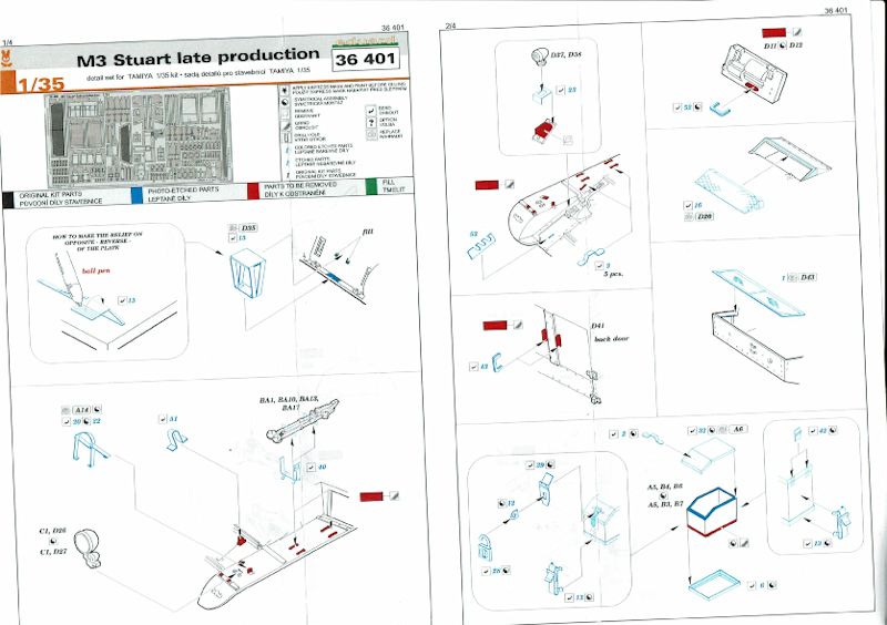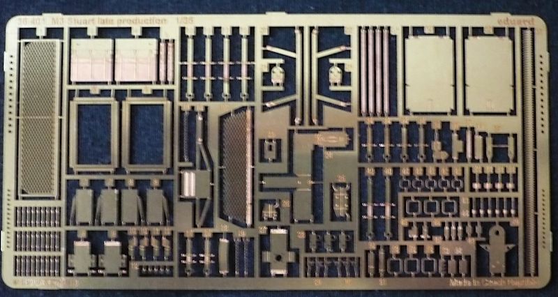 Auf den neuen M3 Stuart von Tamiya hat gleich reagiert und ein Ätzteil-Set vorgelegt. Dieses beinhaltet jede Menge von Beschlägen, Schutzbügel, Werkzeughalterungen, Kotflügelabdeckungen und Grillgitter. So lässt sich mit diesem Satz noch einiges aus dem schon sehr gut detaillierten Panzermodell herausholen.