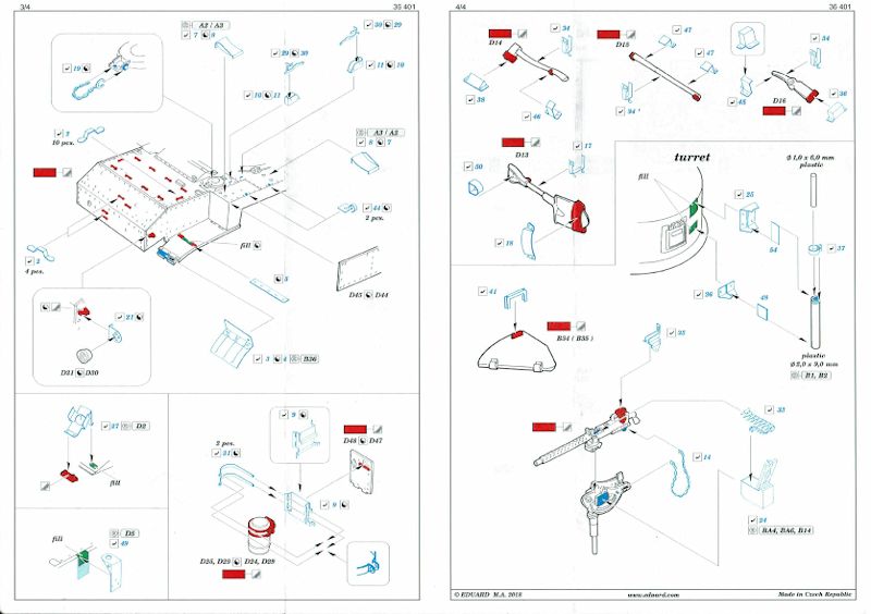 Die Anzahl der zu verarbeitenden Ätzteile ist überschaubar, beschränkt sich auf das Wesentliche und verteilt sich auf den einen Bogen. Die Bauanleitung ist wie immer sehr ausführlich.