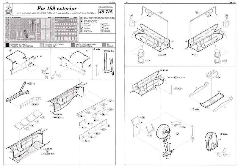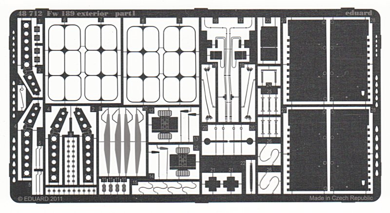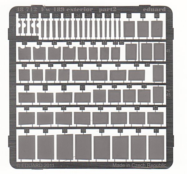 Mit diesem Satz geht es an die Verfeinerung und Korrektur des Äußeren der Fw 189A, insbesondere der Motorgondeln und Fahrwerksschächte. Der Satz enthält 2 normale Fotoätzplatinen ohne Farbe und Kontaktkleber.