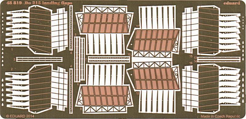 Der vierte Satz für die Do 215B von ICM liefert alle Teile für die offene Darstellung der Landeklappen am Modell. In der Regel sind diese am Boden geschlossen, aber es gibt auch das eine oder andere Foto, das diese offen zeigt (z.B. von Kesselrings Reisemaschine). Falls man diesen Satz verwenden möchte, muss man die Plastikteile natürlich entsprechend aussägen. Auf der Flügeloberseite muss das Material etwas ausgedünnt werden, damit der Klappenschacht hier hinein passt. Da die Sätze aber ohnehin für fortgeschrittene Modellbauer gedacht sind, sollte dies keine allzugroßen Probleme bereiten. Der Rest ist Eduard-Standard für diese Art von Details. Auch hier wieder der Verweis auf die Bauanleitung für einen genaueren Blick.