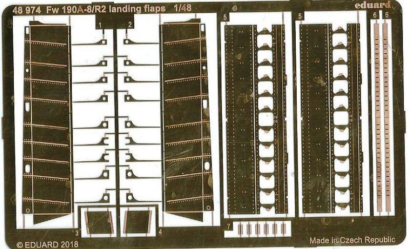 Eduard hat zur Aufwertung seiner Fw 190 A-8/R2-Bausätze ein Ätzteilset für die Nachbildung der Landeklappen herausgebracht. Bis auf die Bezeichnung ist dieses identisch mit dem für die Fw190A-4.