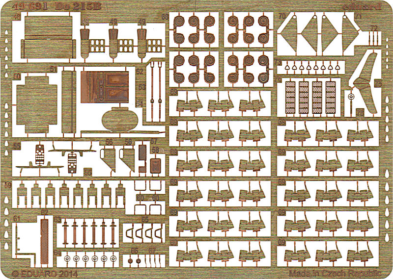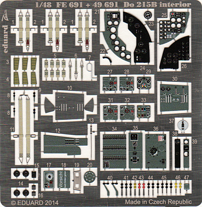Der Bausatz der Do 215B von ICM (FirstLook Do215B-4,FirstLook Do215B-5) ist wirklich gut gelungen. Aber bekanntlich gibt es ja immer Spielraum für Verbesserungen. Da ist zum Einen der gut einsehbare Innenraum, der optimiert werden kann, aber auch einie weitere Kleinigkeiten können ergänzt oder verbessert werden. Eduard hat sich ebenfalls dieses tollen Bausatzes angenommen und meherere Zubehörsätze heraus gebracht.