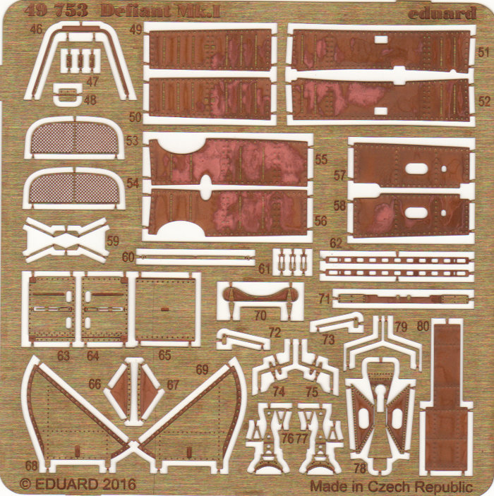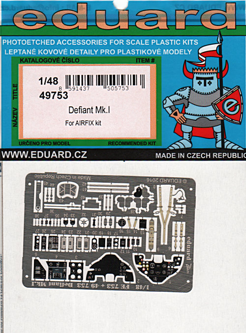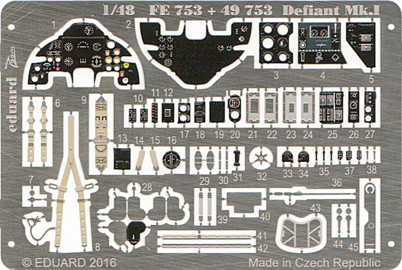 Eduard und Airfix kooperieren ziemlich eng, so dass die tschechische Firma recht frühzeitig Bausätze für die Entwicklung von Zubehörsätzen bekommt. Nur so ist es erklärbar, dass die Eduardsätze diesmal schon vor erscheinen des eigentlichen Bausatzes im Handel waren. Für die Boulton Paul Defiant Mk.I (First Look) bitet Eduard zwei Fotoätzteilsätze an. Hier stelle ich den aus der farbigen Zoom-Platine (7x4,5cm) und einem klar lackierten PE-Bogen der Größe 7x7cm vor.
