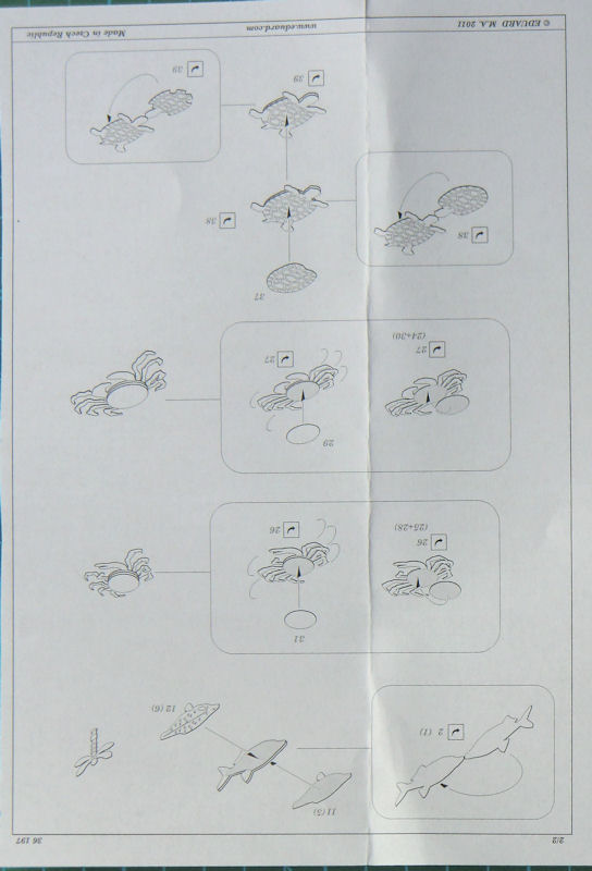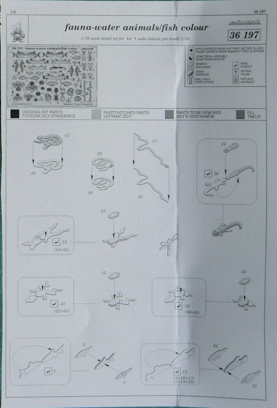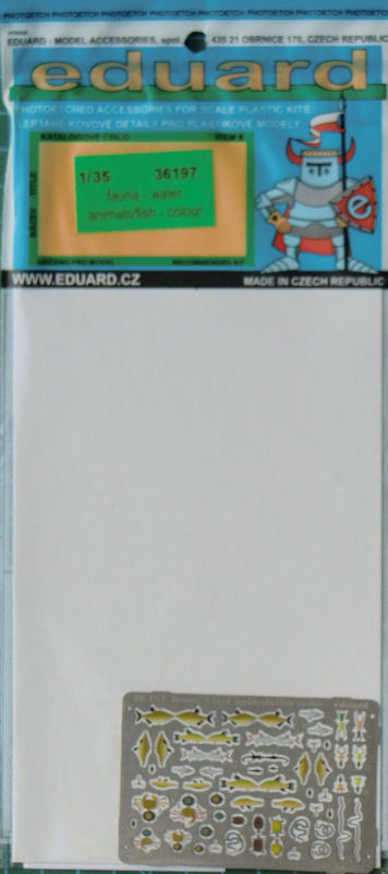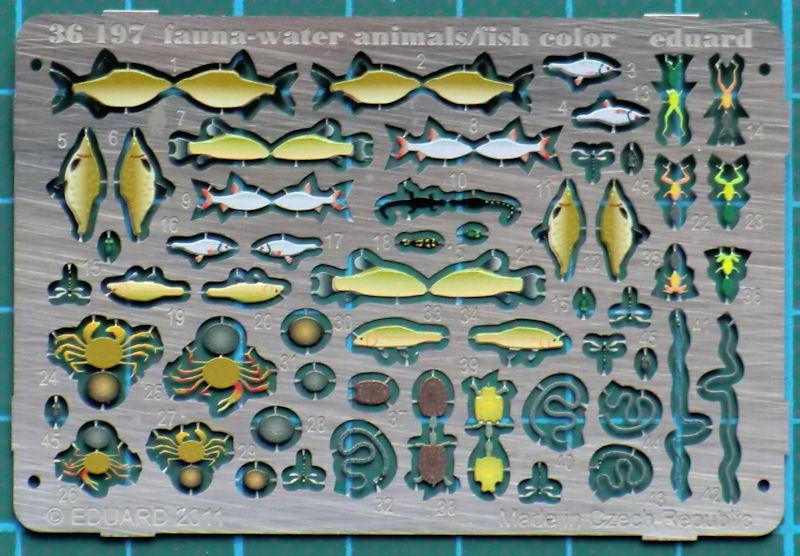 Es gibt im Modell durchaus ungewöhnliche Ideen. Hier hat eduard mal etwas für die Dioramenbauer der größeren Maßstäbe getan. In dem Set sind kleine Wassertiere enthalten. So können aus phantastisch bedruckten Metallteilchen kleine Tiere wie z.B. Fische, Krabben oder Schildkröten entstehen.