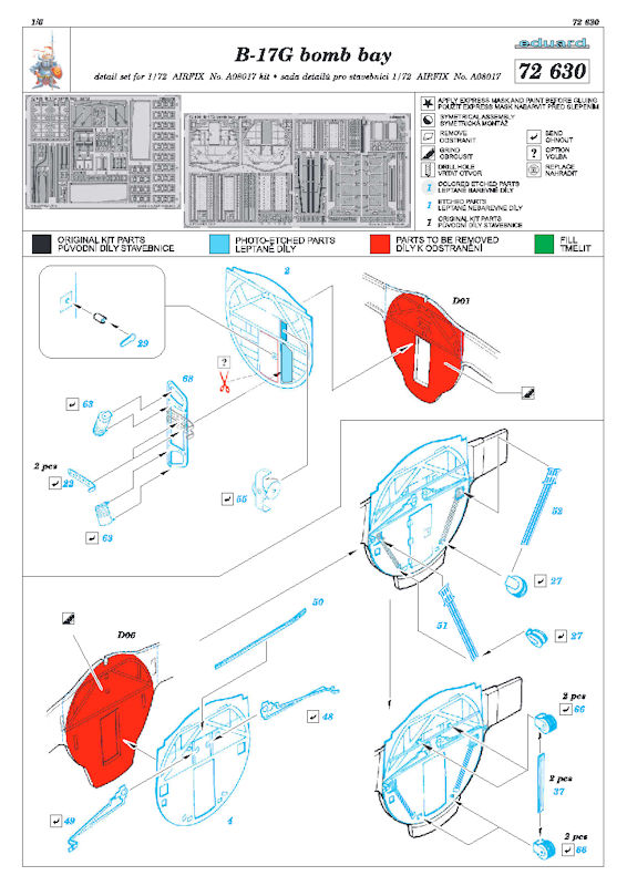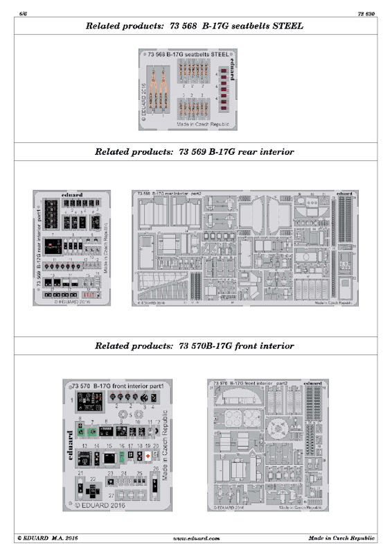 Fazit: Dieses eduard-Set für den Airfix-Bausatz der Boeing B-17G in 1/72 ist für die Modellbauer gedacht die etwas besonderes suchen. Mit den Fotoätzteilen lässt sich sehr schön ein geöffneter Bombenschacht darstellen. Nur für sehr fortgeschrittene Modellbauer zu empfehlen und die können sich auf den Seiten 5 und 6 noch über weitere Sets für die B-17G informieren....