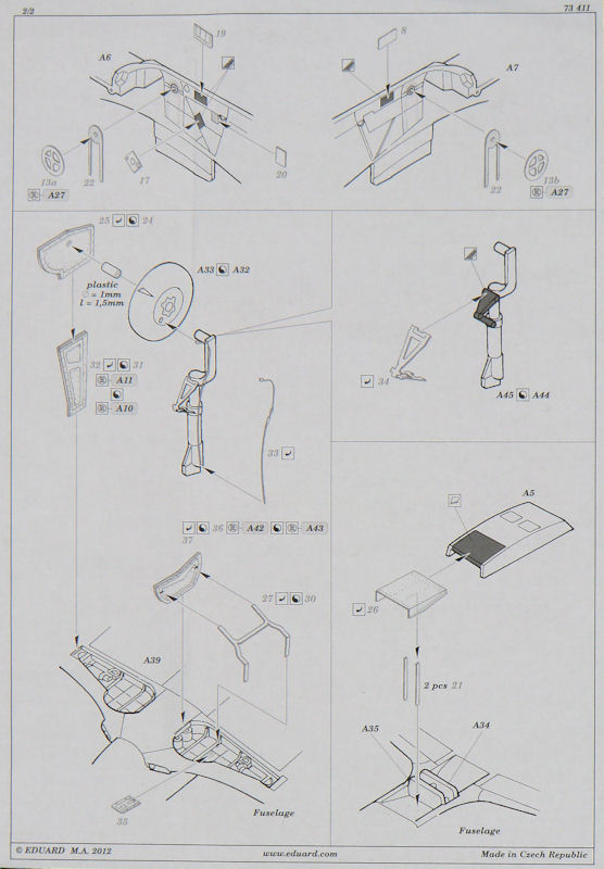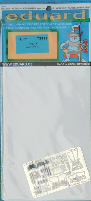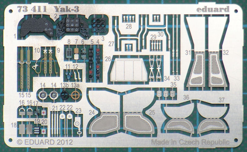 Für den gelungenen Jak-3 Snap-Bausatz von Zvezda in 1/72 hat eduard ein kleines Fotoätzteilset herausgebracht. Es enthält sämtliche Fahrwerksklappen und ein paar Teile für das Cockpit. So gibt es farbig bedruckte Teile für die Instrumente und auch schöne Sitzgurte sowie Handräder.