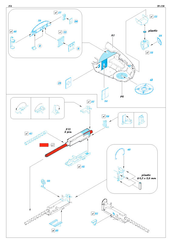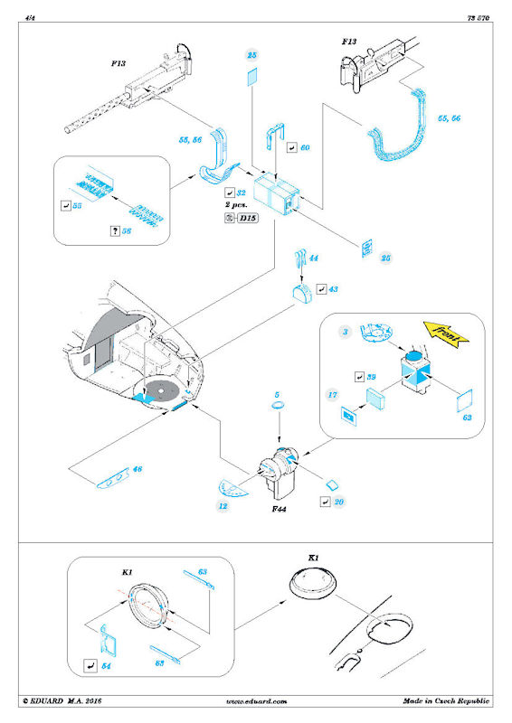 Um dieses Set verbauen zu können, sind erste Erfahrungen im Umgang mit Fotoätzteilen erforderlich. So gibt es eine mehrfarbig bedruckte Platine. Damit lassen sich insbesondere u.a. Instrumente darstellen.