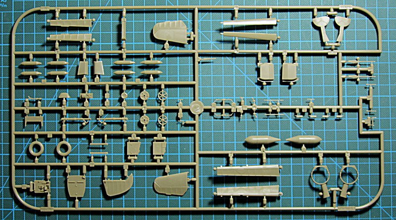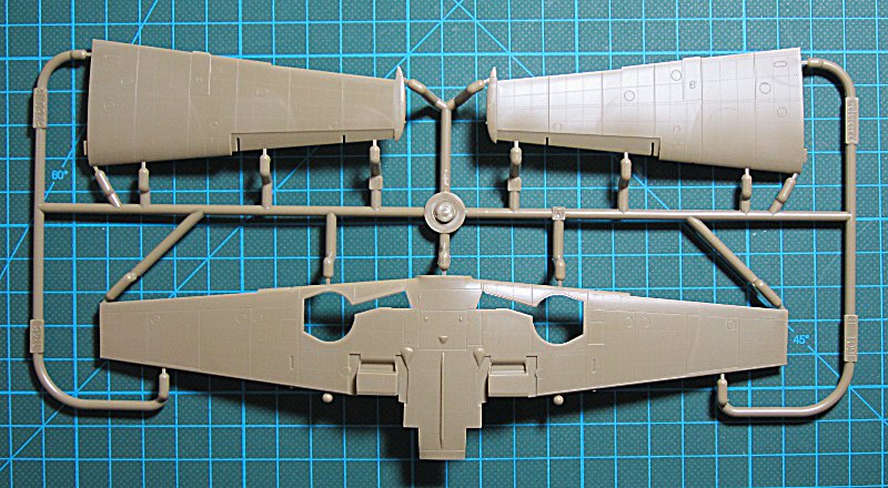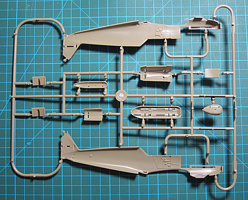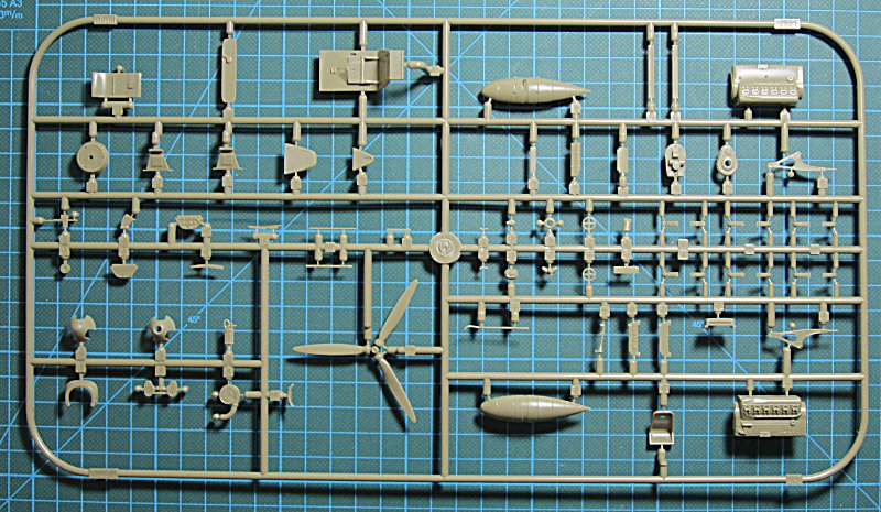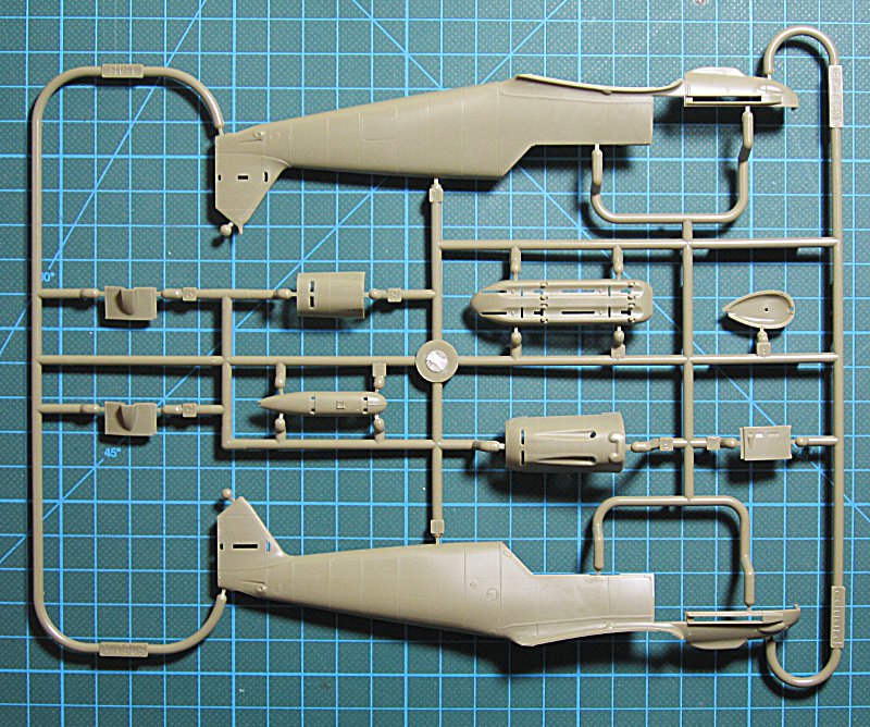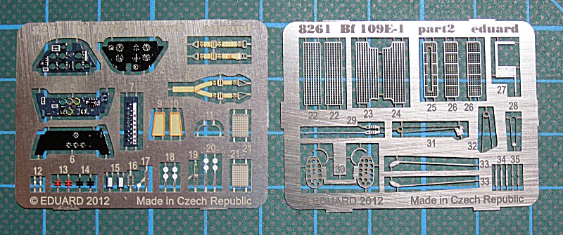 Neben den Haltegriffe in der Innenseite der Kabinenhaube wurde u.a. auch an die Bremsleitungen des Fahrwerkes gedacht. Alle Teile innerhalb der 4 Gussrahmen sind sauber gegossen, einer der beiden Fotoätzteilsätze ist farbig bedruckt und es wurde auch an einen Maskiersatz für die Kabinenhaube gedacht. Zusätzlich besteht die Option auf den Bau einer Bf 109E-1/B mit mehreren möglichen Bombenzuladungen bzw. mit Zusatztank. Wem dieses noch immer nicht ausreicht, kann sich auch gerne diesen zusätzlichen Fotoätzteilsatz benützen, um sein Modell noch weiter zu verfeinern: Eduard 48720