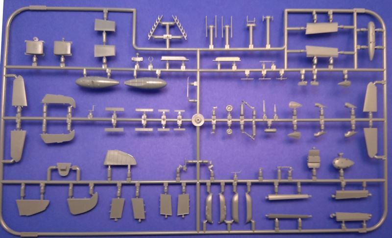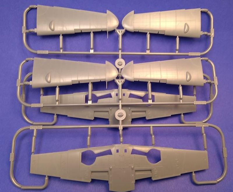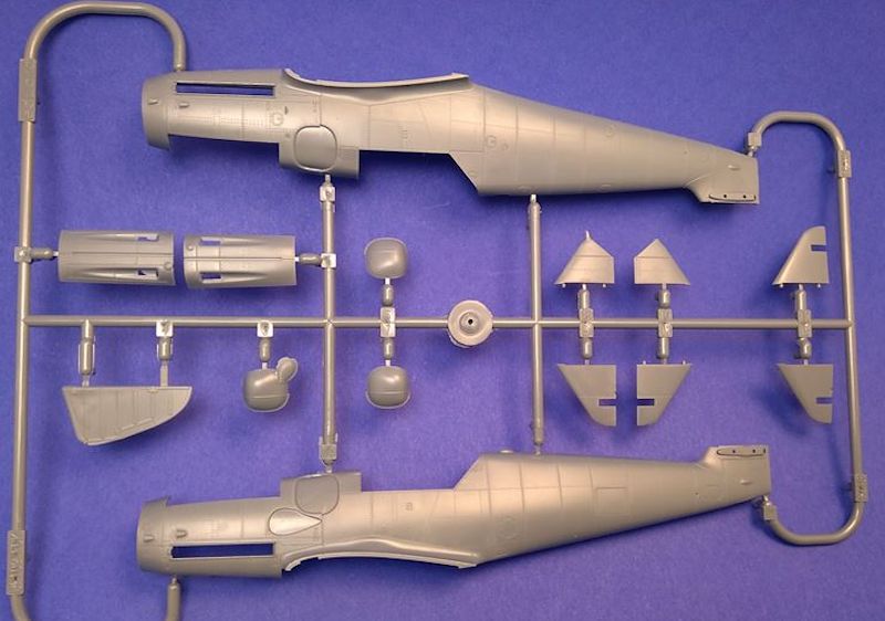 Im Einzelnen gibt es zwei Sets Rumpfteile, einmal ohne Vertiefung für die Kanonenbeulen für die G-2, einmal mit für die G-6-Variante. Es gibt drei Paar Flügel, zweimal mit Beulen für die breiteren Fahrwerksräder der G-6, einmal ohne für die G-2.