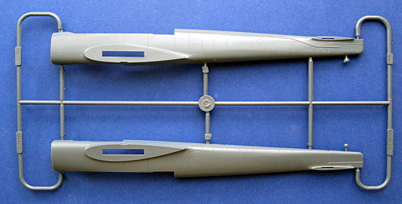 Das Cockpit wird normal aufgebaut, lediglich die Bodenwaffen (MG FF) samt Lafette und Munitionstrommeln werden weggelassen. Um sich etwas Arbeit zu sparen kann man hier auf das eine oder andere Zubhör zurückgreifen (MG-Munition /Funkgeräte von Quickboost z.B.). Vor dem Verschließen des Rumpfes könnten/sollten die bereits erwähnten Sägeschnitte gesetzt werden. Nicht nur die Nase, sondern auch der Rumpf sind davon betroffen, obwohl ein Hinweis in der Bauanleitung fehlt. Vielleicht ist es aus Stabilitätsgründen auch günstiger, den Steg erst nach dem Verkleben zu entfernen. Auf jeden Fall sollte man sich dazu vorher Gedanken machen!