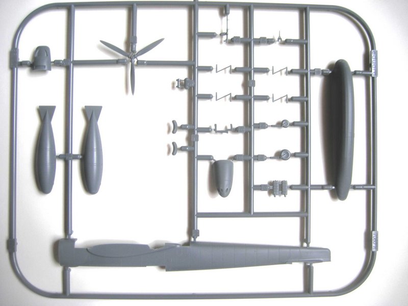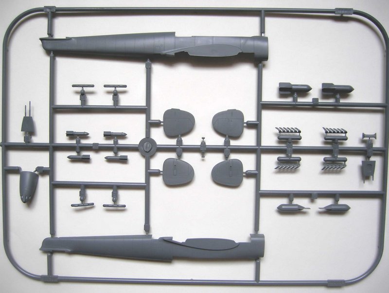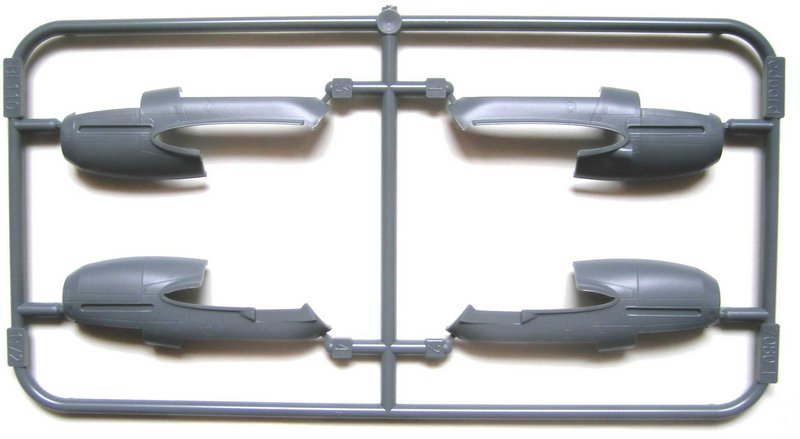 Der Motorgondelübergang ist gut gelungen, die Fahrwerksschächte ebenfalls, Querruder und Kühler liegen separat bei. Eduard liefert auch die passenden Räder. Die Felgen sind schön detailliert. Für den Jagdbomber sind diverse Abwurfwaffen vorgesehen.