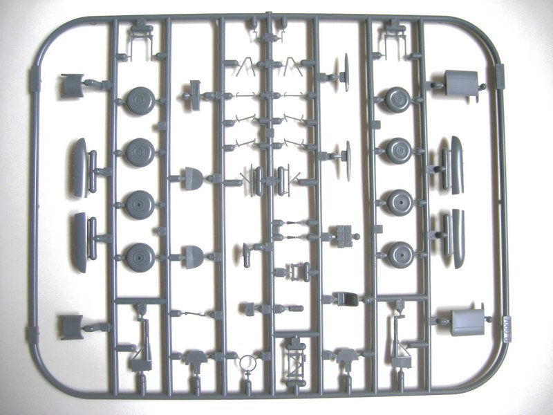 Bausatz: Nach bewährtem Muster folgt nun die Weekendausgabe der Bf 109E. Im eduardtypischen attraktiven Karton findet man die bekannten gut verpackten sieben (jetzt) grauen Spritzlinge mit insgesamt 161 Teilen(!), einen Klarsichtrahmen mit 13 Teilen, die Decals und die Bauanleitung. Die ebenfalls vorhandenen Teile für die C/D und einer der beiden Rümpfe wandern in die Restekiste. Feine versenkte Strukturen sind Standard bei den Bauteilen.