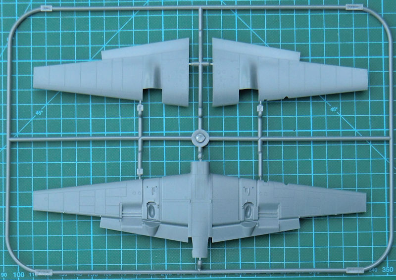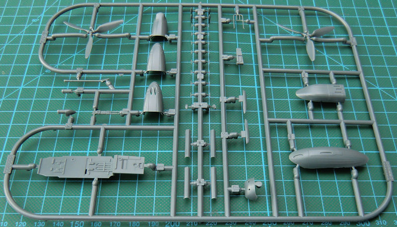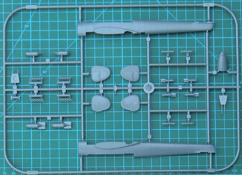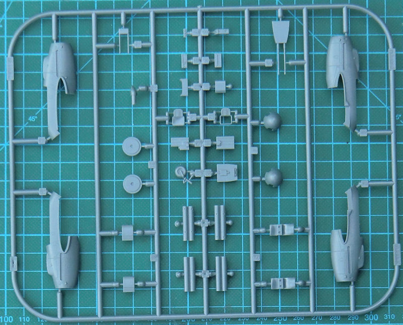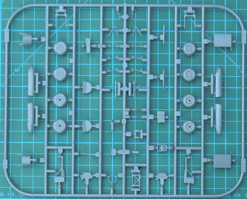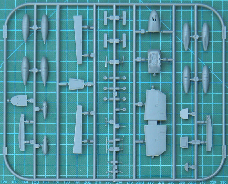 Die Masse der Bauteile ist aus anderen Bausätzen bekannt. So haben die Kunststoffteile eine feine versenkte Struktur. Die Paßgenauigkeit ist hervorragend. Allerdings ist dieser Kit nichts für Anfänger, denn diese Teile müssen alle erstmal verbaut werden. Allein das Fahrwerk ist ein Bausatz für sich.