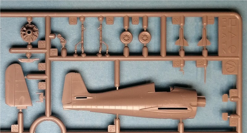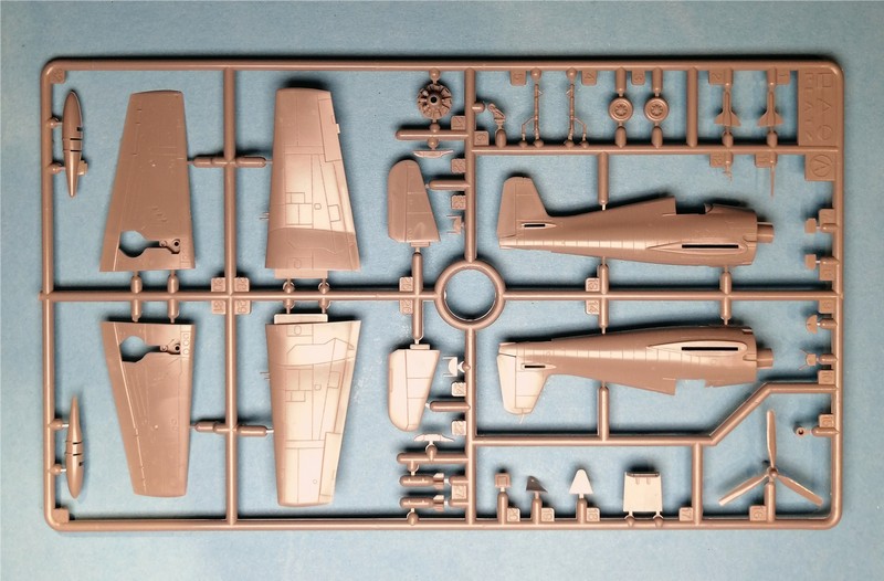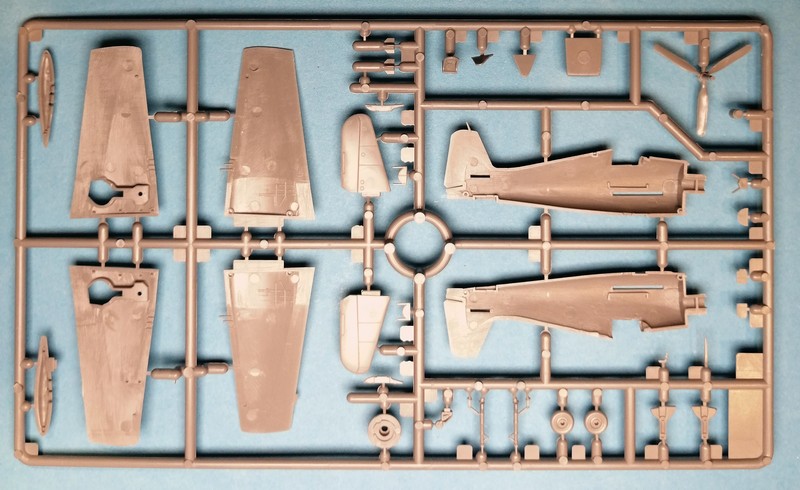 Das Cockpit ist bis auf einen Steuerknüppel komplett vorhanden. Für den Sitz gibt es Gurte als Decal, was in diesem Maßstab völlig ok ist. Auch das Instrumentenbrett wird mittels Abziehbild dargestellt. Die für ein Spritzgussteil sehr dünne und dabei sehr klare Haube sollte diese Details später gut sichtbar machen. Eine Wucht ist auch die Darstellung des Motors. Zwar ist nur der erste Stern des 18-Zylinder Triebwerks vorhanden. Dafür sind aber die einzelnen Rippen erkennbar. Sehr fein ist auch das Fahrwerk nachgebildet. Dies gilt auch für den Propeller. Bei meinem Exemplar ist an einem Blatt ganz leicht Fischhaut vorhanden, welche sich aber leicht entfernen lassen sollte.