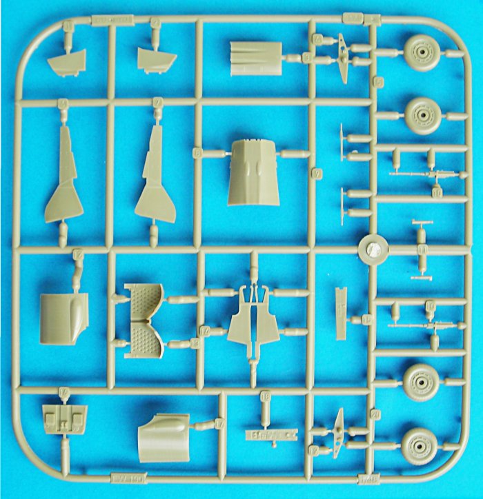 Die Plastikteile sind alle sehr gut abgespritzt und haben keinen erkennbaren Grat. Eduard hat sogar die derzeitige Mode berücksichtigt und das gesamte Modell mit feinsten Nietenreihen überzogen. Seiten- und Querruder liegen als Einzelteile vor. Auch ein weiteres Ärgernis bei einigen bisherigen Modellen wurde beseitigt, das Spornrad ist ein richtiges Rad mit zwei Teilen für die Gabel (man kann aber auch das ebenfalls beiliegende einteilige Spornrad verwenden (wovon ich allerdings abraten würde). Auch für den Zusammenbau erwarte ich keine größeren Probleme. Aufmerksamkeit erfordern wohl wieder das vordere Brandschott und die 100%ige Ausrichtung des Flügelholms. Auch eine geschlossene Darstellung der Waffenabdeckungen auf dem Rumpf und in den Flügelwurzeln erfordert etwas Mehrarbeit. Nach meinen Bauerfahrungen mit der A-8 würde ich absoluten Bastelanfängern nicht zu diesem Bausatz raten, da er eher für Fortgeschrittene konzipiert ist.