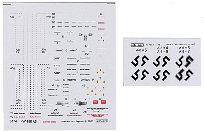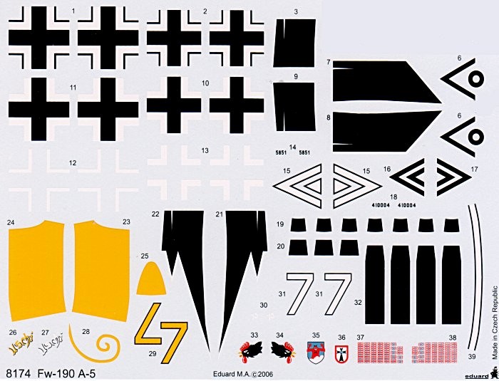 Die Abziehbilder sind diesmal wieder sehr gut gedruckt und haben nur sehr wenig erkennbaren Versatz. Schön ist die Lösung für die Hoheitszeichen, die zwar aus dem Hauptbogen herausgeschnitten sind, jetzt aber zweiteilig auf einem Extrabogen beiliegen