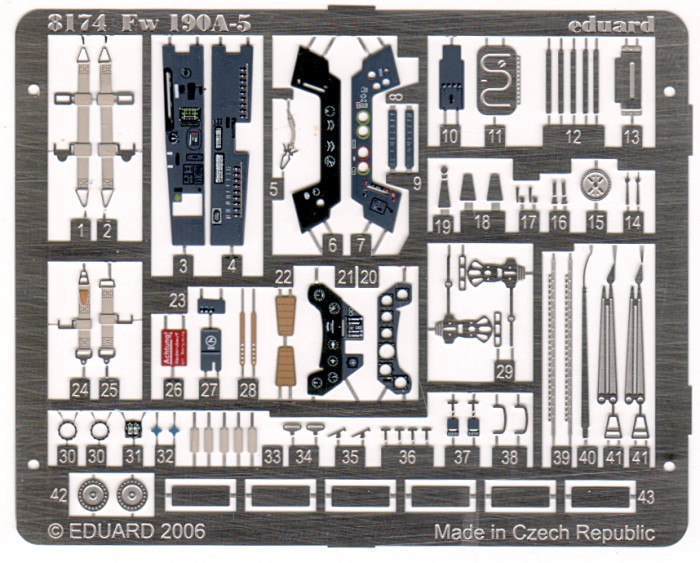 Natürlich liegen dem Bausatz auch wieder Masken und versionsspezifische Ätzteile bei, so dass man auf ein schönes "Out of the box" Bastelerlebnis hoffen kann. Schon hier kann man mit offenen Schächten und dem komplett beiliegende Motor einiges an Zeit investieren. Der Detaillierungswut sind allerdings keine Grenzen gesetzt. Eduard selbst hat für die A-8 bereits einige Sätze herausgebracht, und auch für diese Variante werden sicher bald ein oder zwei weitere folgen ... und vielleicht kommt ja noch etwas von den Resin-Spezialisten.