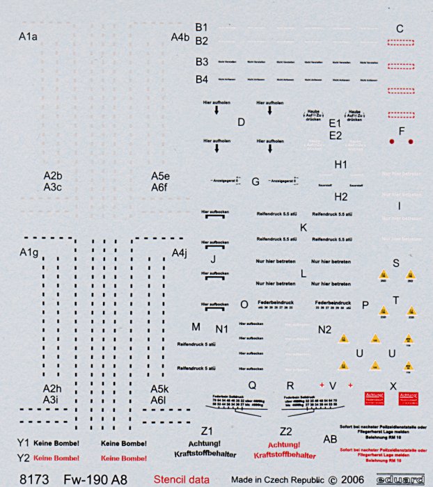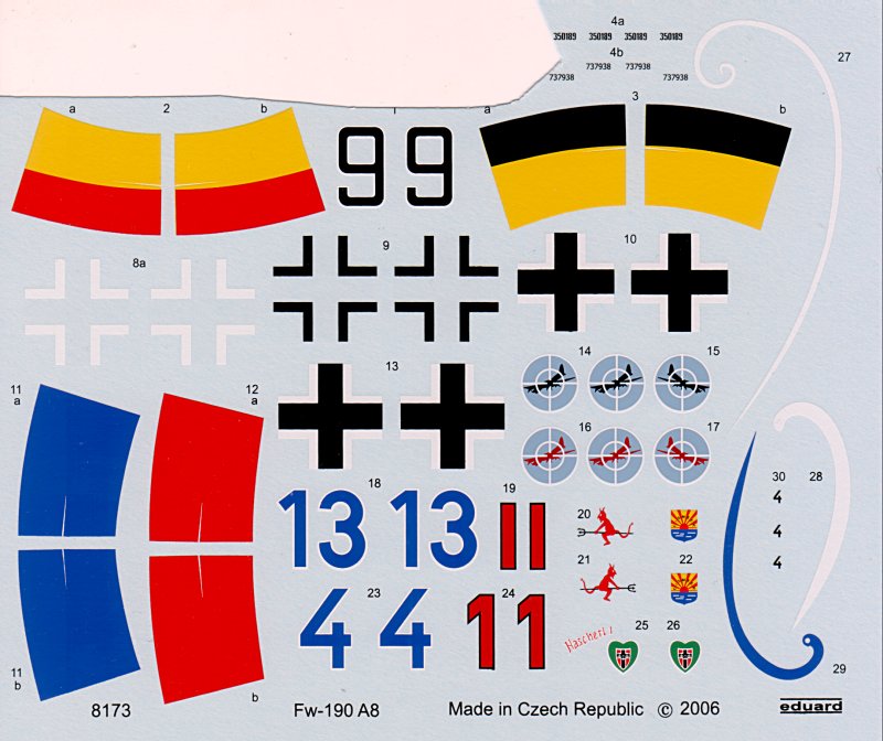 Die Abziehbilder sind diesmal nahezu versatzfrei gedruckt (bei meinem Exemplar) und tragen nur den Eduard Schriftzug. Leider sind die Hoheitszeichen einteilig ausgeführt, so dass diese für den deutschen Markt entfernt werden mussten.