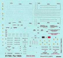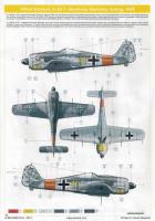 Wie bereits erwähnt gibt es zwei Decaloptionen: Die Maschine von Alfred Bindseil, 6./JG 1, Störmede, Deutschland, Frühjahr 1944; und „Erika“, eine Fw 190 A-8 der IV./JG 5, Herdla, Norwegen, Frühjahr 1945; Beide Maschinen sind in RLM 74/75/76 getarnt, die JG5-Maschine mit blauen Abzeichen, die JG1-Maschine mit rotem Rumpfband. Für die Wartungshinweise liegt ein Extra-Decalbogen mit Stencils bei.