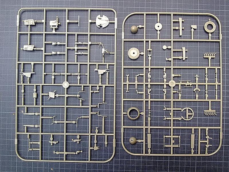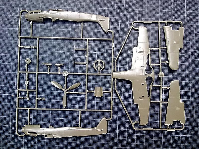 Offen oder geschlossen dargestellt werden können aber die Waffenschächte in den Flügelwurzeln. Für beide Varianten gibt es jeweils spezielle Teile. Die Kritik, die nach Erscheinen der ersten Bausätze der A-Reihe laut wurde, dass man die Schächte nur mit viel Umbauaufwand geschlossen darstellen könne, hat hier wohl gefruchtet. Sehr schön sind auch die separaten Quer- und Seitenruder, deren Rippenstruktur sehr zurückhaltend nachgebildet wurde. Weitere Optionen sind Räder mit und ohne Profil (welche an der einzigen Markierungsoption montiert waren wird leider nicht erwähnt, - sofern dies überhaupt bekannt ist!!-) sowie offene und geschlossene Lüftungsklappen am Kühler. Wer mag, kann auch noch ein ETC anbauen und einen Zusatztank dranhängen (dito).