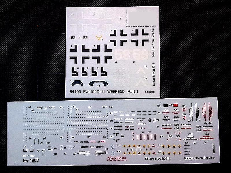 Eduard bringt diese Variante seiner exzellenten FW 190 D—Serie hierl als Weekend-Edition heraus. Dabei handelt es sich um die abgespeckte Version des bereits einmal als Limited Edition zusammen mit der D-9 bzw. als Dual Combo Profi Pack zusammen mit der D-13 erschienenen Bausatzes, jedoch ohne Ätzteile und Maskierfolien. Leider fehlen auch jegliche historischen Hinweise zur Maschine. Decals sind für genau eine Maschine ausgelegt, auf einem separaten Blatt finden sich aber die kompletten Wartungshinweise.