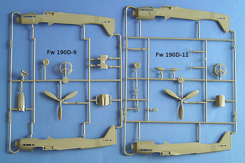 Fw 190D-9 Fw 190 D-11/D-13 Dual Combo). Die Form ist gut in Schuss und die Teile sind sauber abgespritzt. Es liegen Masken und Ätzteile für beide Bausätze bei. Der Bausatz der D-11 enthält bereits Markierungen für die „rote 4“, so dass es kein Vorteil ist, wenn man diesen einzelnen Bausatz bereits besitzt (es sei denn man möchte die kaum belegte „rote 2“ auch bauen).